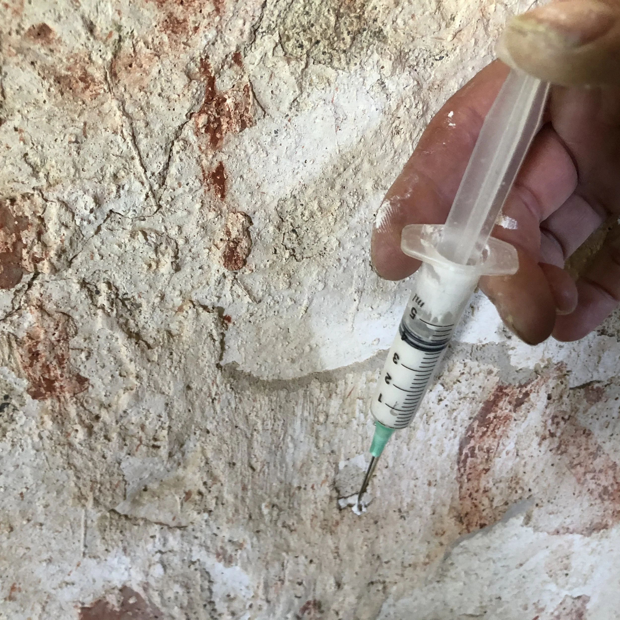 Bønsnes middelalderkirke Alle2021Konservering 4. juli Skrevet av Hilde Viker Berntsen Behandling av kalkmalerierSikring av kalkmalerier på korets østvegg og på tidligere yttervegg mot vest. Oppdragsgiver: Hole kirkelig fellesråd KalkmalerierMiddelalderkirkeKonservering Hilde Viker Berntsen