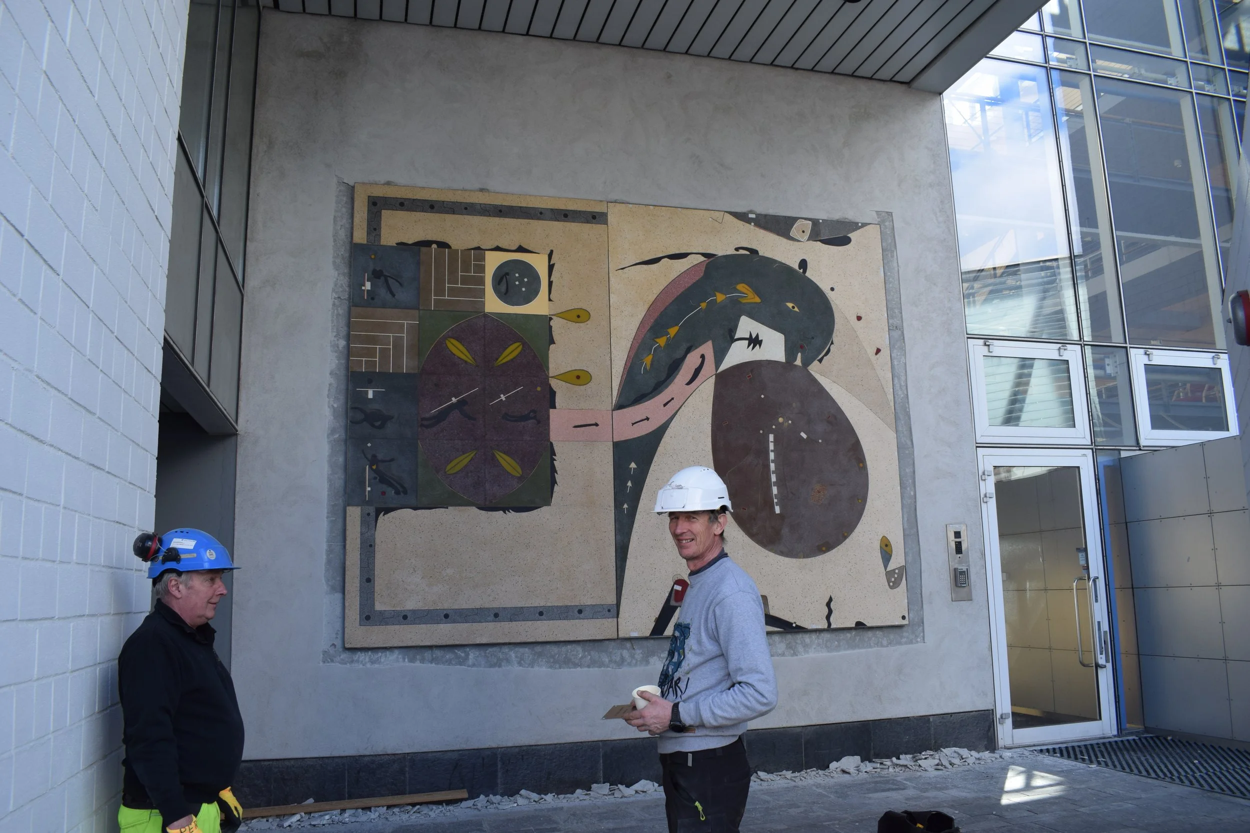 Tilstandsvurdering av Ulf Valde Jensens monumentale terrassoverk Livsløp 1990 før demontering og midlertidig lagring. Før demontering har verket vært bygningsintegrert/ montert på kommunegårdens eksteriør/ Bærum kommune. Verket skal senere remonteres i den kommende nye kommunegårdens sentralhall. .